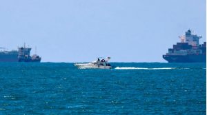 © Saeed QAQ / Un bateau de la flottille pour Gaza intercepté par par les forces navales israéliennes, est escorté vers le port d’Ashdod, dans le sud d’Israël, le 2 octobre 2025