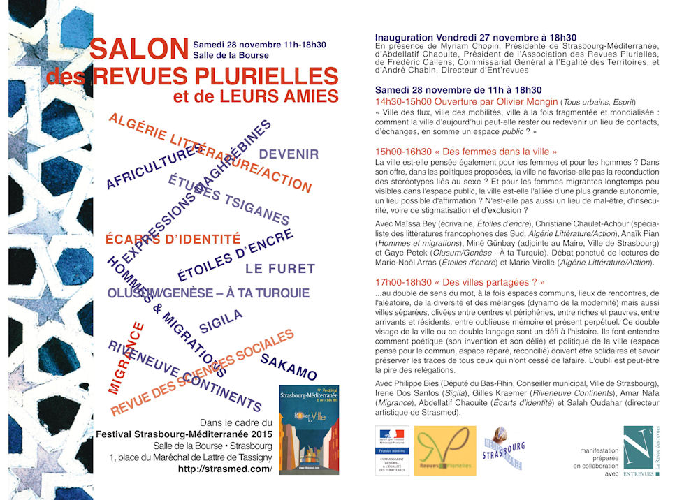 A TA TURQUIE est à Strasbourg ce samedi 28 novembre de 11h à 18h30, à la Salle de la Bourse, au Salon des Révues Plurielles, une manifestation organisée dans le cadre du Festival Strasbourg-Méditerranée 2015 (http://strasmed.com).