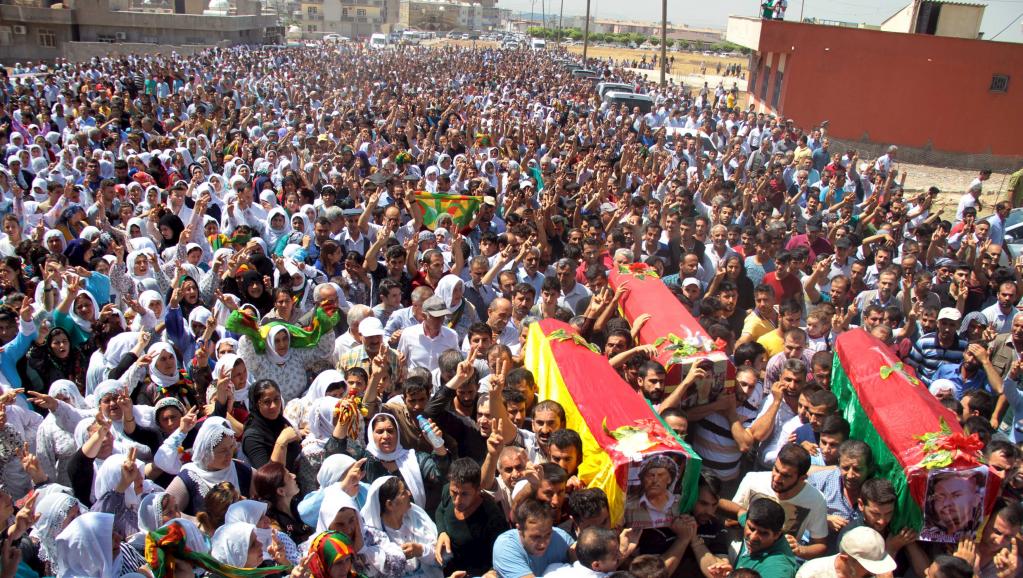 Les funérailles de trois Kurdes de Turquie tués plus tôt dans le mois d’août, à Silopi, dans la province de Sirnak, le 8 août 2015. REUTERS/Sertac Kayar