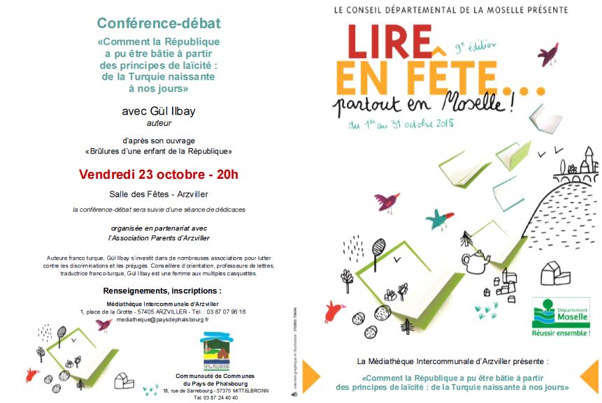 Gül Ilbay, en relation avec son dernier livre « Brûlures d’une enfant de la République » présentera une conférence suivie de débats sur :