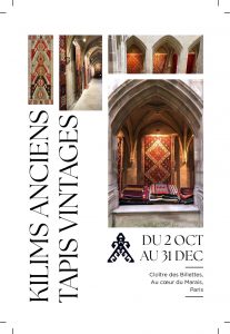 Nous avons le plaisir de vous inviter à découvrir une sélection exceptionnelle de kilims anciens et tapis vintages, présentée dans le cadre unique et historique du Cloître des Billettes.