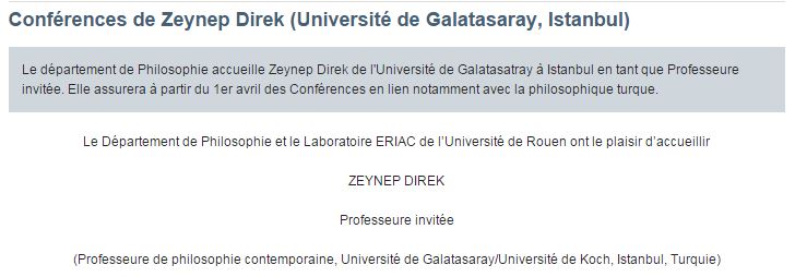Dans cette Conférence, je me focaliserai sur la réception de la philosophie de Heidegger et de Derrida en Turquie. Comment ces philosophies, pendant la dernière décennie, ont joué des rôles particuliers dans le contexte politique et religieux en Turquie, et plus spécifiquement dans le débat sur la sécularisme turque ? Comment les islamistes et les interprétations séculaires diffèrent-ils dans leurs appropriations de ces philosophes ? Quel rôle la philosophie européenne a joué pour la modernité turque?