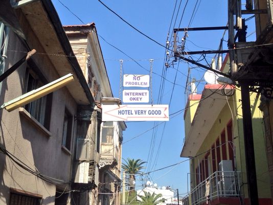 Dans la rue des hôtels de Basmane, à Izmir, Internet est un argument commercial.