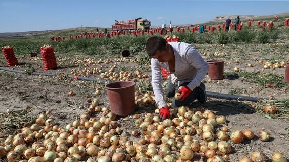 Récolte des oignons en Turquie, août 2019. Photo d’illustration (ADEM ALTAN / AFP)