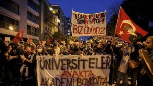La protestation quotidienne depuis le 19 mars (ici des étudiants à Izmir, troisième ville de Turquie), va laisser la place à un boycott des produits des entreprises proches du pouvoir islamo-conservateur de Recep Tayyip Erdogan. | BERKCAN ZENGIN, MIDDLE EAST IMAGES VIA AFP