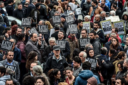 CaptureRassemblement à Istanbul le 13 octobre 2015 à la suite des attentats d’Ankara, certains participants brandissent des pancartes où il est écrit : « nous connaissons le tueur. »