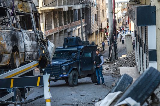 CaptureLa police turque dans une rue de Diyarbakir le 5 octobre 2015.  ILYAS AKENGIN / AFP