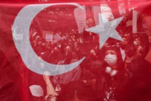 Parmi les manifestants interrogés, beaucoup professent leur allégeance à la figure xénophobe et raciste Umit Ozdag, chef du Parti de la Victoire (Zafer), inculpé en janvier pour «insulte contre le président» et «incitation à la haine». Tel Ozan, 23 ans, un étudiant en traduction française, est emmitouflé dans un drapeau turc. «On ne s’inclinera jamais devant ce dictateur», assure-t-il,en désignant le président Erdogan. A l’instar d’autres manifestants, l’étudiant confesse néanmoins sa crainte de subir la répression du régime : «J’ai peur de finir en garde à vue, car ils fichent les gens…» glisse-t-il, t-shirt enroulé autour du visage, et lunettes de soleil couvrant ses yeux.