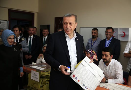 Le président turc Recep Tayyip Erdogan dans un bureau de vote d’Istanbul, le 7 juin. Le président turc Recep Tayyip Erdogan dans un bureau de vote d’Istanbul, le 7 juin. Lefteris Pitarakis / AP