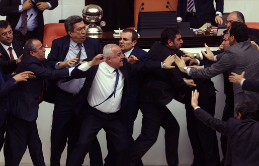 C’est une semaine particulièrement agitée qu’a connu le Parlement turc, théâtre de violentes altercations entre députés mardi et jeudi lors d’un débat houleux sur une loi controversée prévoyant une extension des pouvoirs de la police lors des manifestations, rapportent les médias locaux.