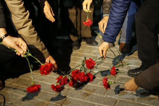 Des personnes se recueillent près du site de l’attentat dans le quartier historique de Sultanahmet, à Istanbul, le 12 janvier 2016.