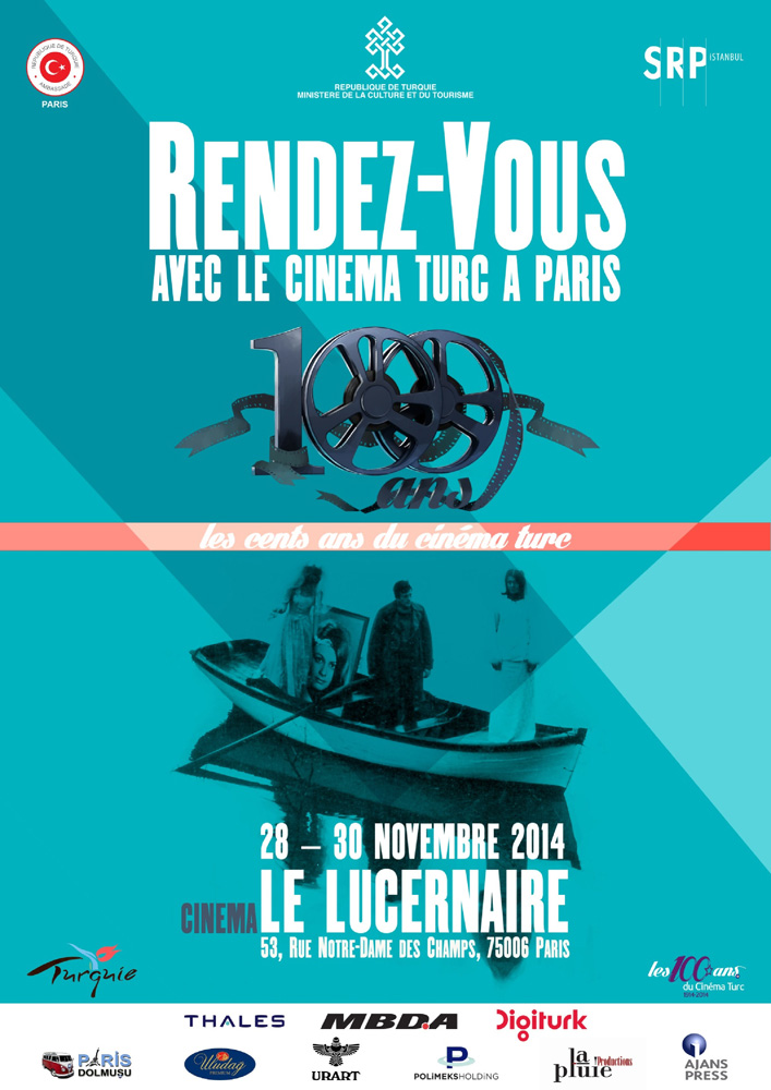 Dans le cadre du Centenaire du cinéma turc, l’Ambassade de Turquie et le Ministère turc de la Culture et du Tourisme proposent une rétrospective des plus grands films turcs à travers un événement dédié au cinéma, organisé par l’agence SRP Istanbul*. De nombreuses personnalités – acteurs, réalisateurs, auteurs – participeront à ce premier rendez-vous avec le public français. Au programme, une sélection de 5 films et des rencontres avec les Talents.