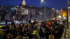 « Ce n’est pas un rassemblement mais une action de défiance contre le fascisme », a lancé Ozgur Ozel, le leader du CHP, principal parti d’opposition, aux dizaines de milliers de personnes réunies devant la municipalité d’Istanbul où des manifestations sont organisées tous les soirs depuis l’arrestation du maire d’opposition d’Istanbul, Ekrem Imamoglu, mercredi dernier. L’opposition a organisé de nouveaux rassemblements, lundi 24 mars au soir, en Turquie.
