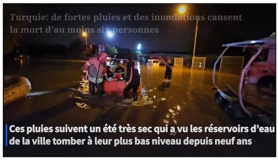 Deux d’entre elles ont perdu la vie mardi soir à Istanbul, la plus grande ville du pays, où des rues ont été transformées en torrents. Douze personnes ont été blessées, selon un bilan communiqué par le bureau du gouverneur. Les services d’urgence turcs ont également déploré trois morts et trois disparus dans la province de Kirklareli, dans le nord-ouest du pays.