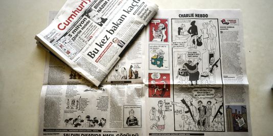 Les deux journalistes de Cumhuriyet (« La République ») poursuivis pour avoir reproduit dans leurs pages la couverture du numéro de Charlie Hebdo publié une semaine après l’attentat du 7 janvier, risquent quatre ans et demi de prison, assurait mercredi 8 avril le site internet du quotidien qui les emploie. Il leur est reproché d’avoir « insulté les valeurs religieuses du peuple ».