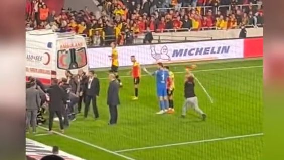 Tandis qu’il se trouvait derrière les ambulances, le gardien d’Altay, Ozan Ozenc, a été attaqué de manière invraisemblable par un spectateur, qui l’a frappé à plusieurs reprises au niveau du crâne et par derrière… avec un poteau de corner.