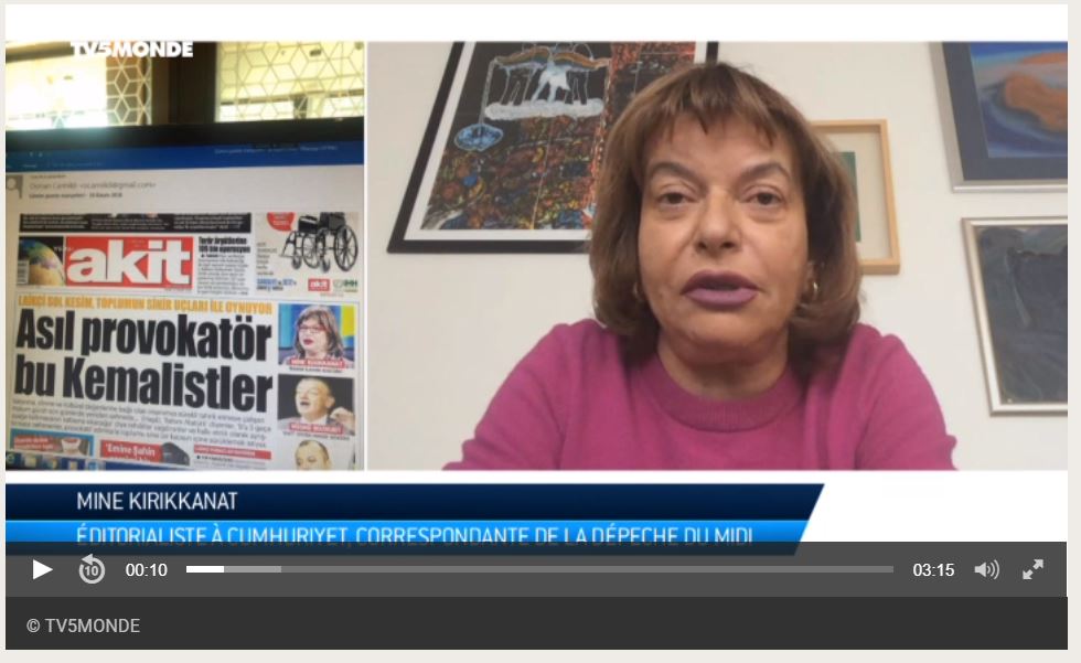Mine Kirikkanat, basée à Istanbul, est aussi une figure de la vie intellectuelle de son pays. Dans ses éditoriaux pour le quotidien Cumhuriyet, elle a pu chroniquer la dérive autoritaire du régime Erdogan et les pressions qui s’exercent sur la presse.