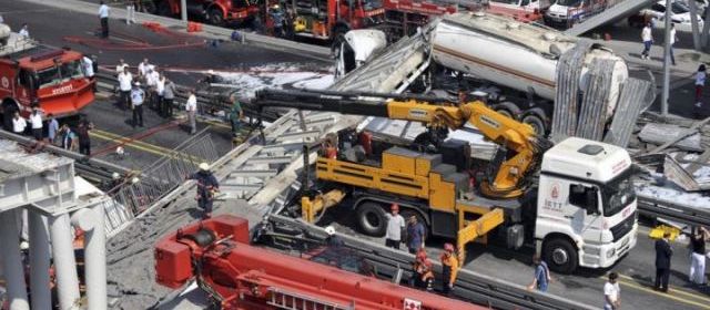 Selon les images d'une caméra de sécurité diffusées par le quotidien Hürriyet, un camion a heurté et arraché la passerelle avec sa benne qui, pour une raison inconnue, était levée.