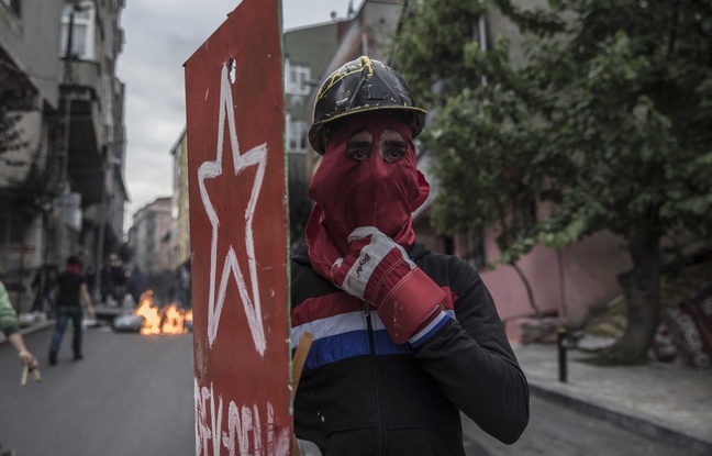 Un manifestant du parti marxiste-léniniste (DHKP-C) dans le quartier Okmeydani à Istanbul (Turquie) pour le premier anniversaire du mouvement de résistance du parc Gezi, le 31 mai 2014. – TEMIR FURKAN/SIPA