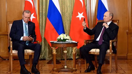 Le président russe Vladimir Poutine et le président turc Tayyip Erdogan lors d’ne réunion à Sotchi, en Russie, le 4 septembre 2023. SPUTNIK / REUTERS
