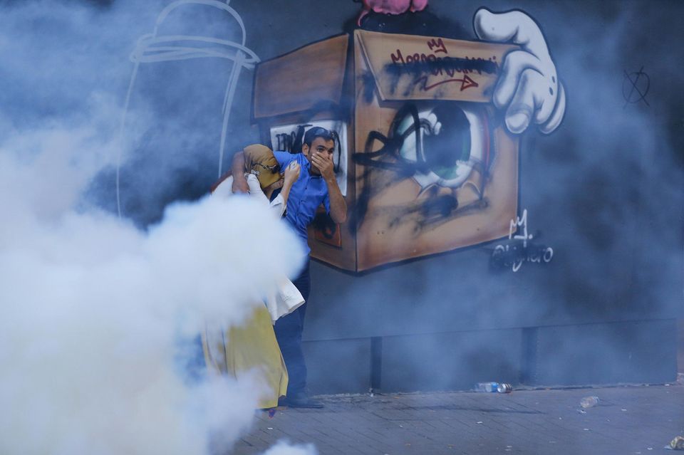 Un couple s’enfuit pour échapper au gaz lancé par la police lors d’une manifestation dans le centre d’Istanbul, 20 juillet.